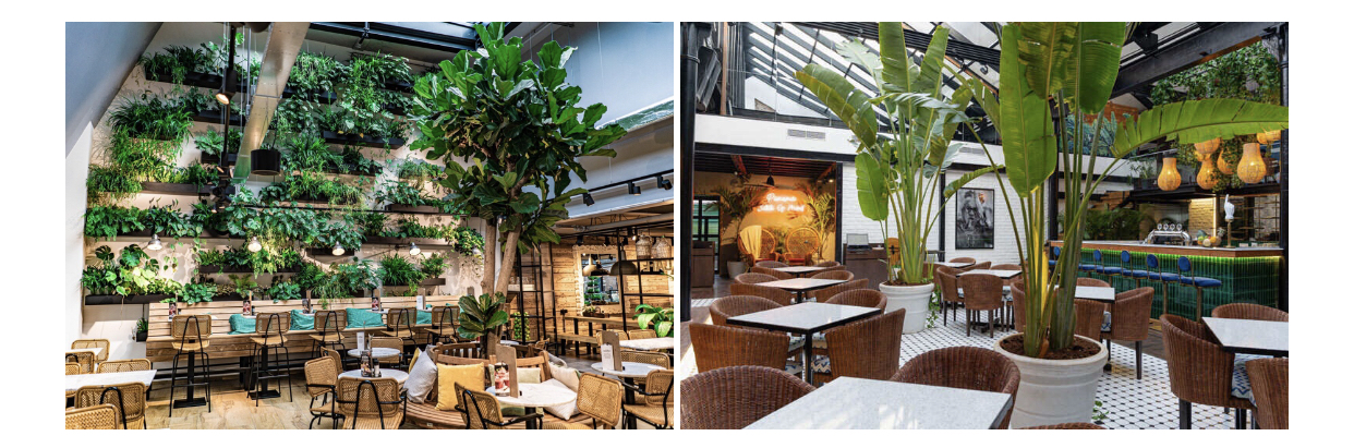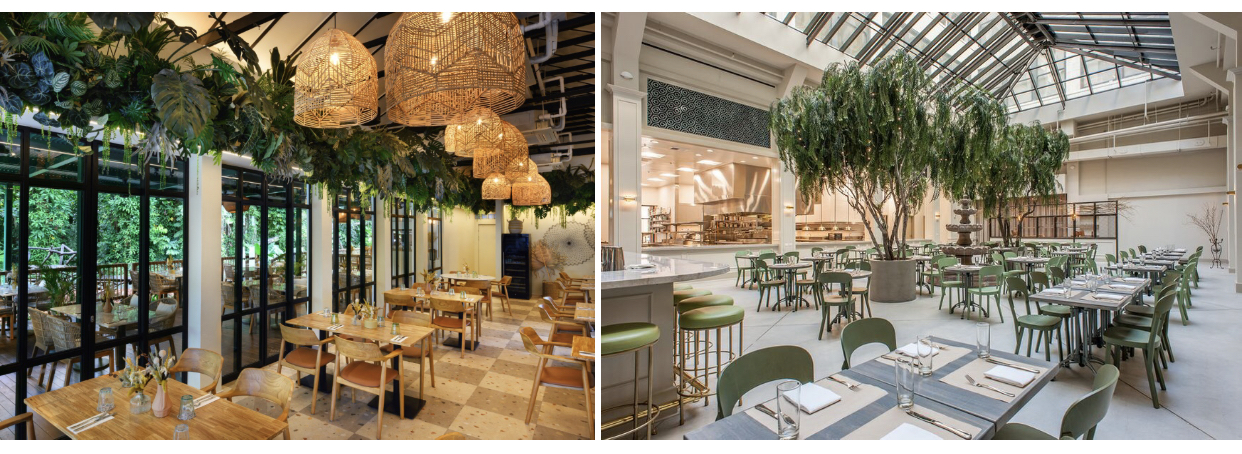 식물로 장식하는 식당들이 늘어나고 있어요.